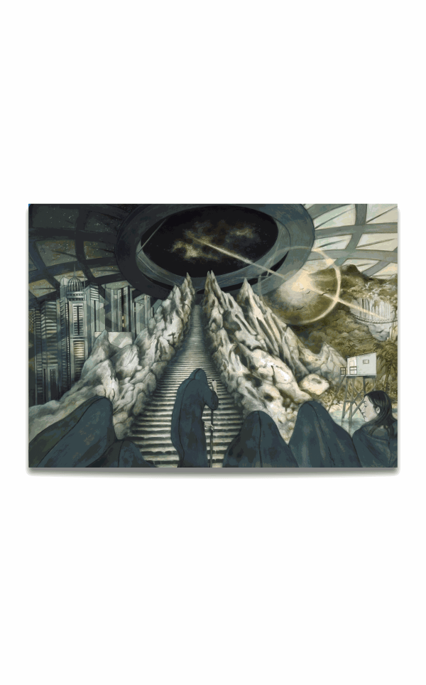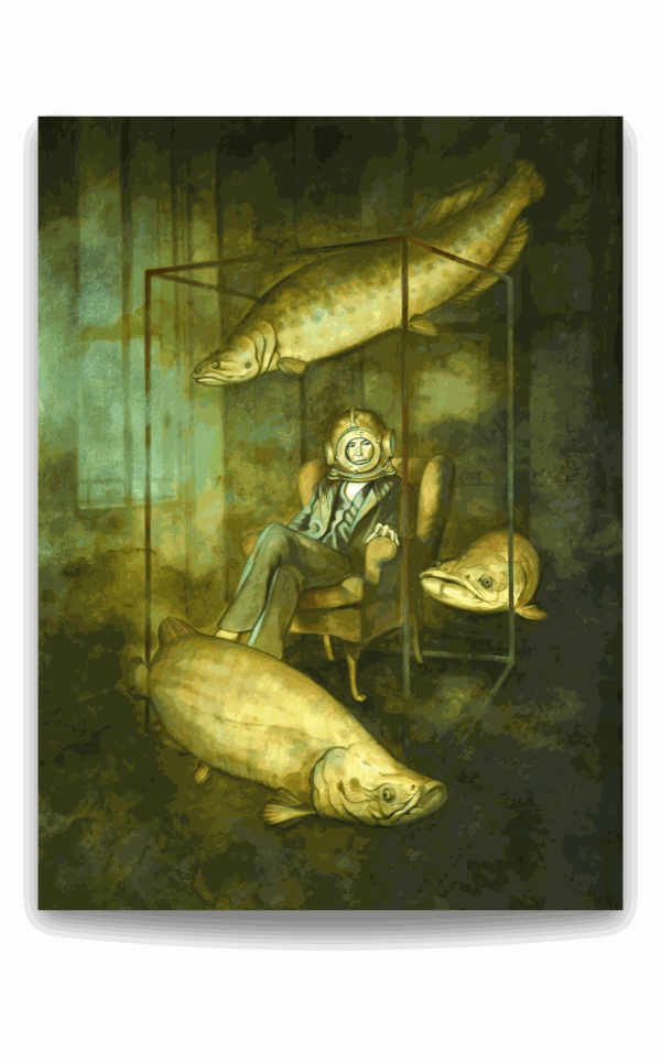 Inspired by science fiction novels, Chaix paints fantastical narrative landscapes that transport viewers into a surreal underwater world. Her storytelling is mysterious and open-ended, inviting personal interpretation and encouraging each viewer to uncover their own meaning within the work.