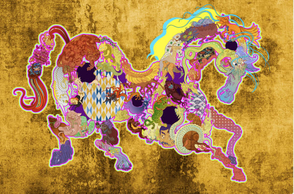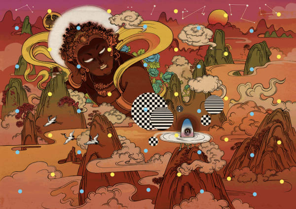 Momo’s work blends ancient Chinese mythology with contemporary visual storytelling, including Chinese ink line drawing, Tibetan Thangka art, and Pop Art. Drawing inspiration from Shan Hai Jing (The Classic of Mountains and Seas), Momo reimagines mythical creatures through daring and innovative designs. Each figure she creates serves as a profound embodiment of humanity's most primal emotions, transcending cultural and temporal boundaries.